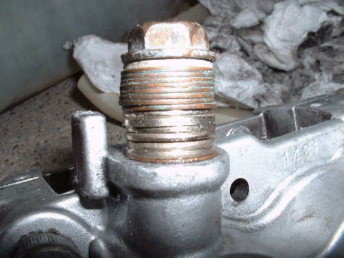 Bei getrennter Bremszange überflüssige Löcher wie hier den Bremsschlauchanschluss mit geeigneten Mitteln verschliessen; die Entlüftungsschraube zudrehen nicht vergessen!