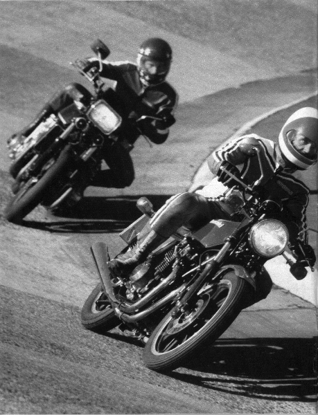 In langsamen Kehren kippt die Maschine von selbst und lässt sich nur mühsam wieder aufrichten. In schnellen Kurven dagegen muss sie regelrecht hineingezwungen werden. Allein der relativ grossen Bodenfreiheit und dem aussergewöhnlich elastischen Motor ist es zuzuschreiben, dass beide Fahrer mit der XS 1100 schneller als mit der RD 400 waren.