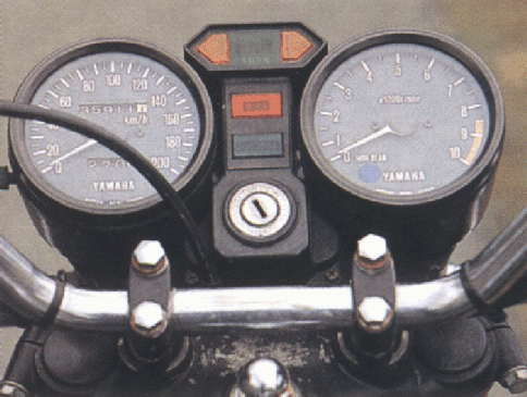 Die Kontrollleuchten fristen ihr Dasein in einer simplen Konsole - aber wen an diesem Cockpit etwas anderes als die Nadel im rechten Rundinstrument interessierte, der hatte definitiv das falsche Motorrad gekauft! |