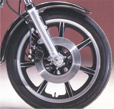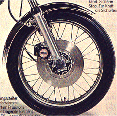 Gussfelge Modell 1976 bis 1977, rechts die Speichenfelge der RD250 Baujahr 1976 |