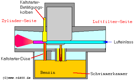 von der Luftfilterseite her führt ein Luftkanal bis zu der Kaltstarterdüse.
