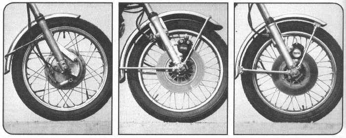 Die Benelli-Vorderradgabel stammt vom Marzocchi und zeigt beste Federungs- und Dämpfungseigenschaften. Die Gabel der Yamaha steht ihr nur wenig nach, während bei der Suzuki auf richtige Gabelölmenge und Sorte geachtet werden muss. |