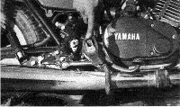 Durch die Motorvibrationen lockerte sich der Schalthebel auf seiner Welle. Abhilfe brachte das Erweitern des Spannschlitzes und starkes Nachziehen der Klemmschraube. Im Gelenk des Kickstarters setzten wir eine stärkere Feder ein, die in Verbindung mit der Arretierkugel den Kickstarterhebel besser in seiner Fahrposition hielt.